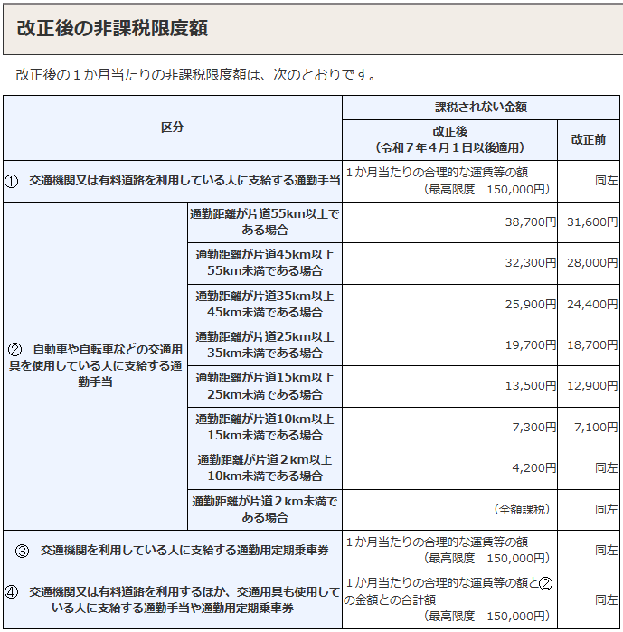 通勤手当の非課税限度額の改正について